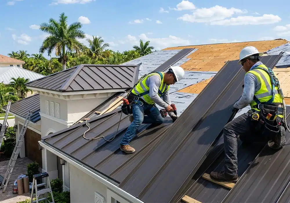 In Palm Beach County, heavy rain, intense sun, and hurricane-force winds degrade inferior roofing materials quickly. Metal roofing provides high wind resistance and long-term durability, but homeowners often face confusion
